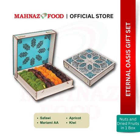 Celebrate life’s meaningful moments with the Mahnaz Food Hamper & Gift Box, a luxurious selection of premium dates, nuts, and gourmet treats, thoughtfully curated to offer a grand and meaningful gift.
