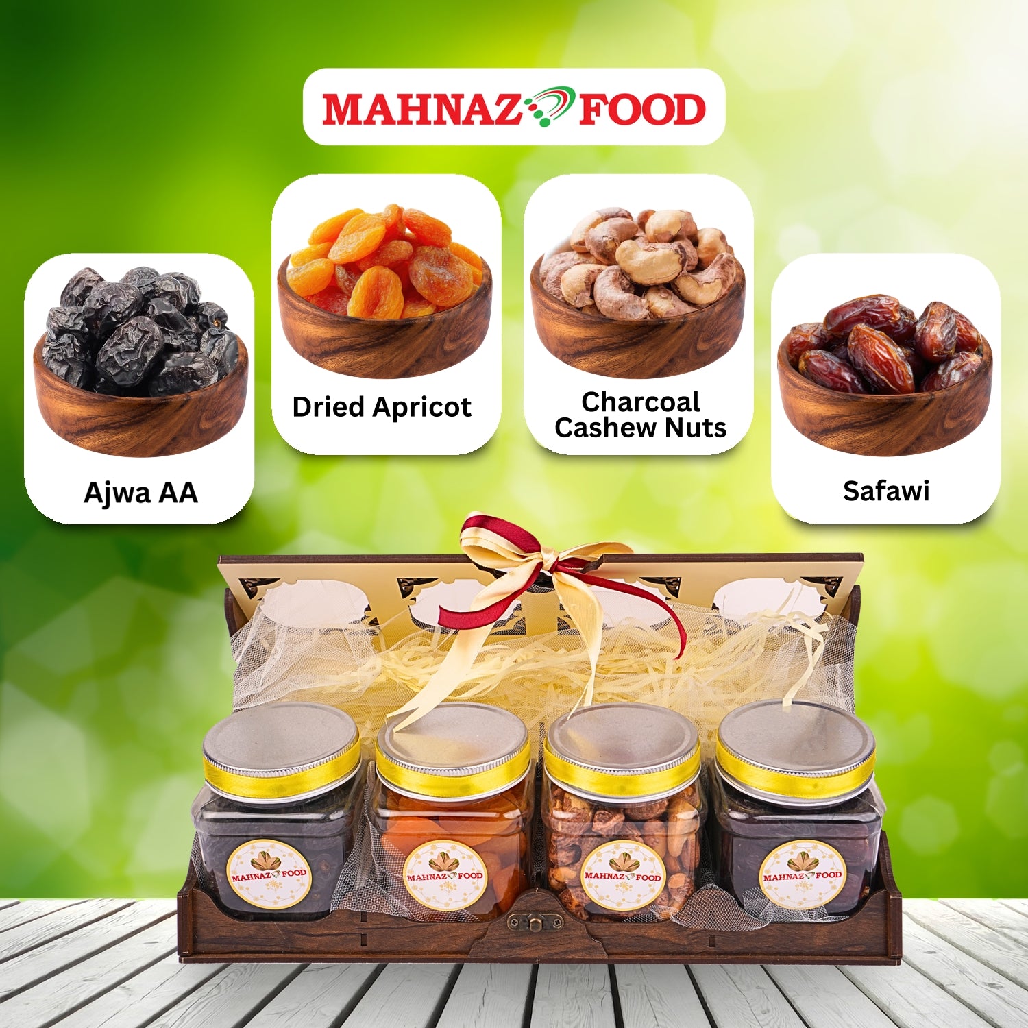 Dessert Wood Harmony Collection is a refined gift set presented in a natural wood-inspired box, featuring a harmonious blend of premium dates, dried fruits, and nuts. Thoughtfully curated to balance sweetness, texture, and elegance, this collection is perfect for festive gifting, corporate appreciation, or mindful indulgence.