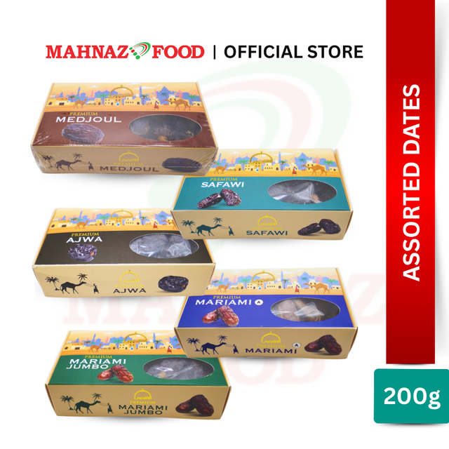 Mahnaz Food Premium Assorted Dates 200G | Ajwa / Safawi / Mariami A / Mariami Jumbo / Medjoul | Kurma Berkualiti | 椰枣